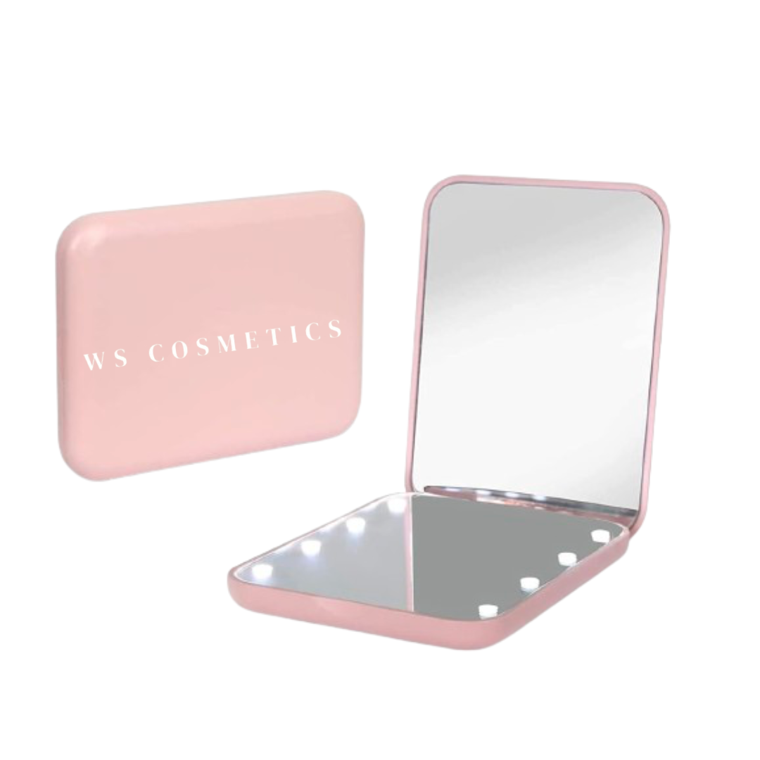 Elevate your beauty routine with this sleek and stylish LED mirror from WS Cosmetics. Crafted with a chic pink exterior, this compact mirror opens to reveal a bright LED-illuminated mirror surface, allowing you to apply makeup with precision and clarity. The built-in lights evenly illuminate your face, ensuring flawless application every time. Compact and portable, this mirror is the perfect accessory for touch-ups on the go or at home. With its elegant design and practical functionality, this LED mirror from WS Cosmetics is a must-have for any beauty enthusiast.
